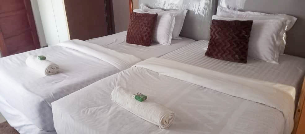 Our spacious Family Chalet with 2 interconnecting rooms is the perfect retreat for families or groups. The chalet features two rooms: one with two three-quarter beds, ideal for children or friends, and the other with a luxurious king or queen-sized bed for a restful stay. The interconnecting design ensures privacy while allowing easy access between rooms, offering the best of both worlds. With stunning lake views, modern amenities, and ample space to relax, this chalet is perfect for creating cherished memories with loved ones at Samfya Beach Resort.